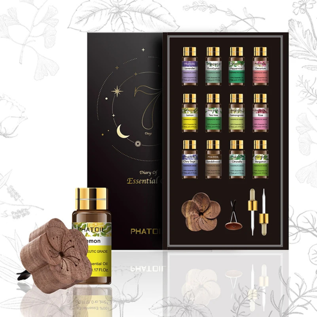 - 💧 12 bouteilles de 5 ml d’huiles essentielles pures