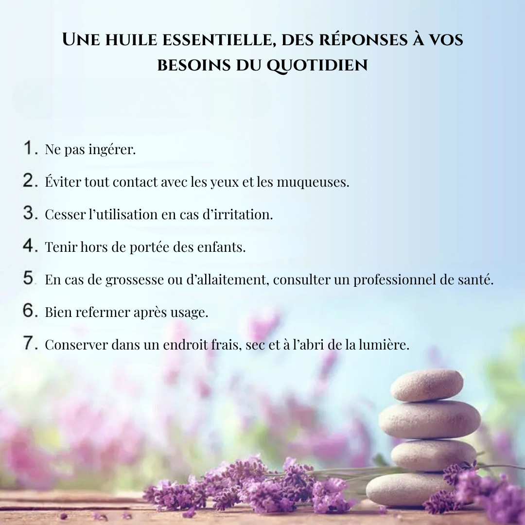 - Respectez toujours les précautions d’emploi propres à chaque huile essentielle