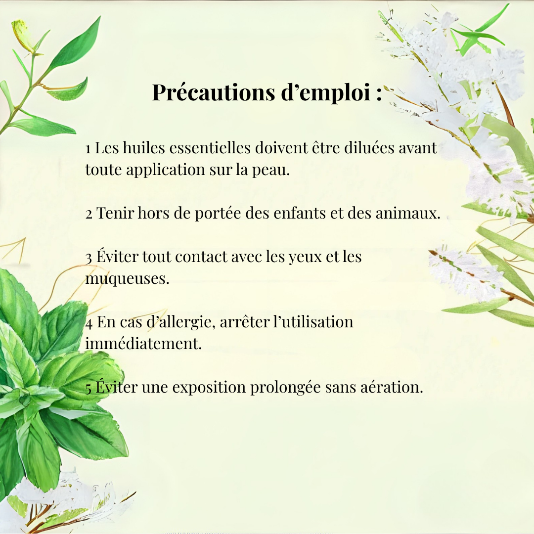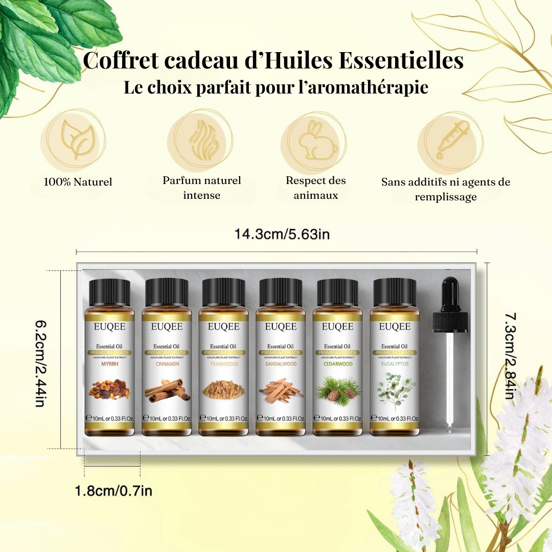 - 💧 6 flacons de 10 ml d’huiles essentielles pures
